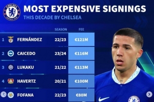 体育资讯4月19日讯 《转会市场》统计了切尔西自2020年以来的最贵引援情况,4人转会费上亿欧元。